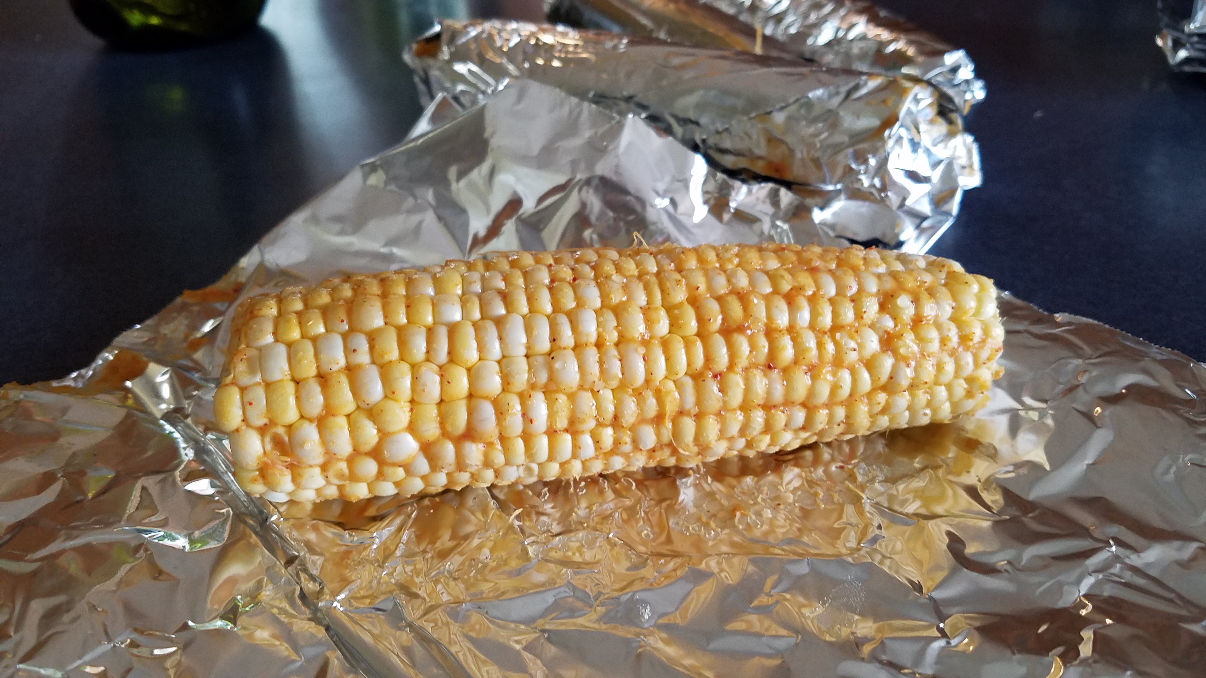I like to grill corn on the cob in the husk but, since I could only find corn cobs with the husks already removed, I used heavy duty aluminum foil to prevent the corn from burning.