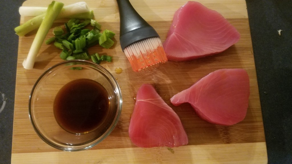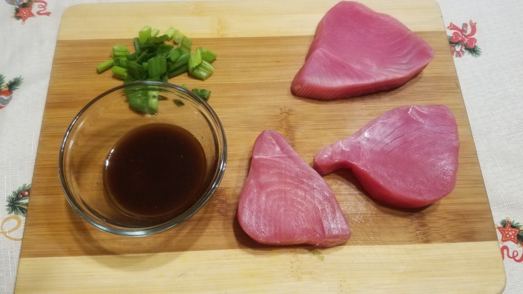 3 frozen tuna steaks (1” thick, 5 ounces each)