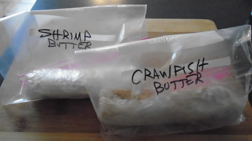 I made stock reductions from the crawfish and the shrimp and then I made compound butter using the crawfish and shrimp reductions. All of that work took a considerable amount of time, but it was worth it.