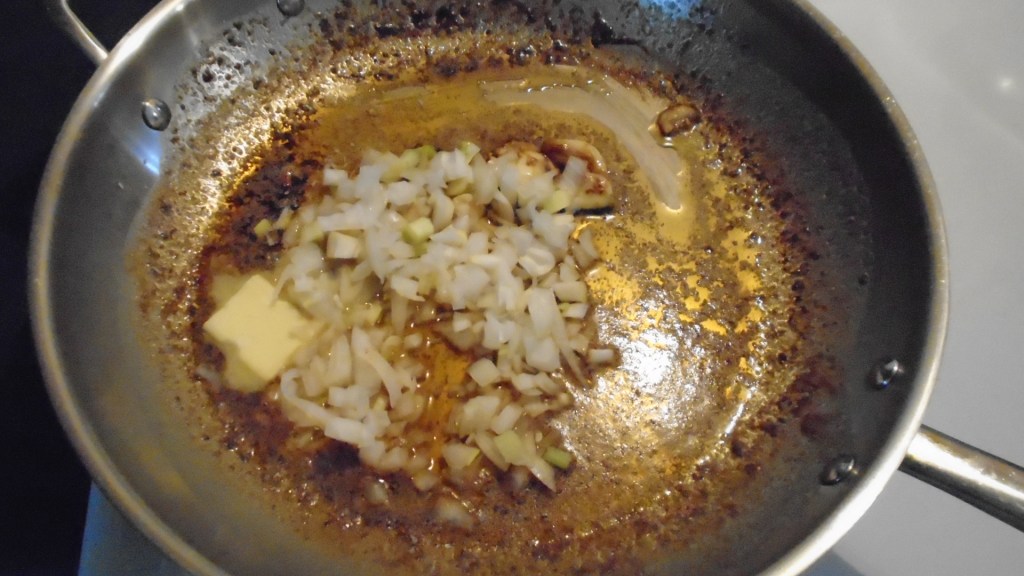 Add 1 tablespoon of butter and the onion and continue stirring for another minute.
