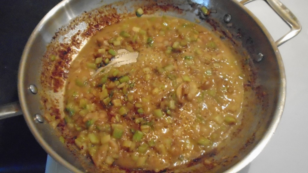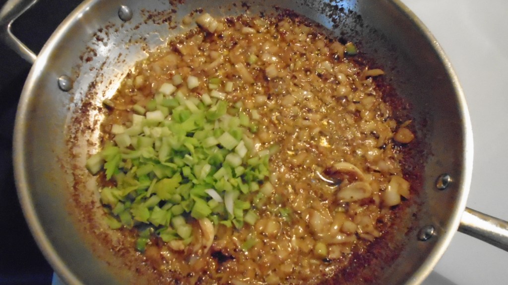 Add the celery and stir. Reduce heat to low and simmer for about 5 minutes.