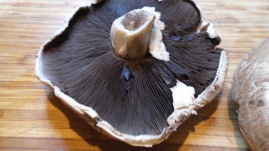 Using a spoon, scrape the gills out of the mushrooms. This will give you more room for the stuffing.