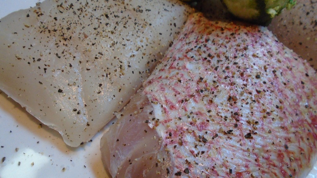 I’m sticking with an unconventional theme for today’s grilling, after yesterday’s Chicken Satay Salad. The law says we must grill but it doesn’t say what we must grill. So, today’s adventure includes red snapper filets, Portobello mushrooms and mini-eggplants.