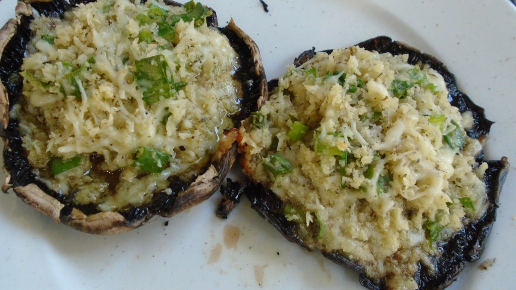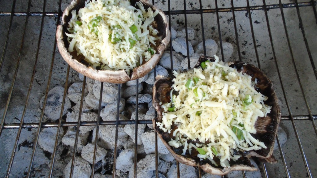 Pack the center of the mushrooms with the stuffing, leaving a little room on the edges. Place the mushrooms on the hot grill and cook until the cheese melts and bubbles, (about 5 minutes). Remove from the grill, squirt a little lemon juice on the mushrooms and serve warm.