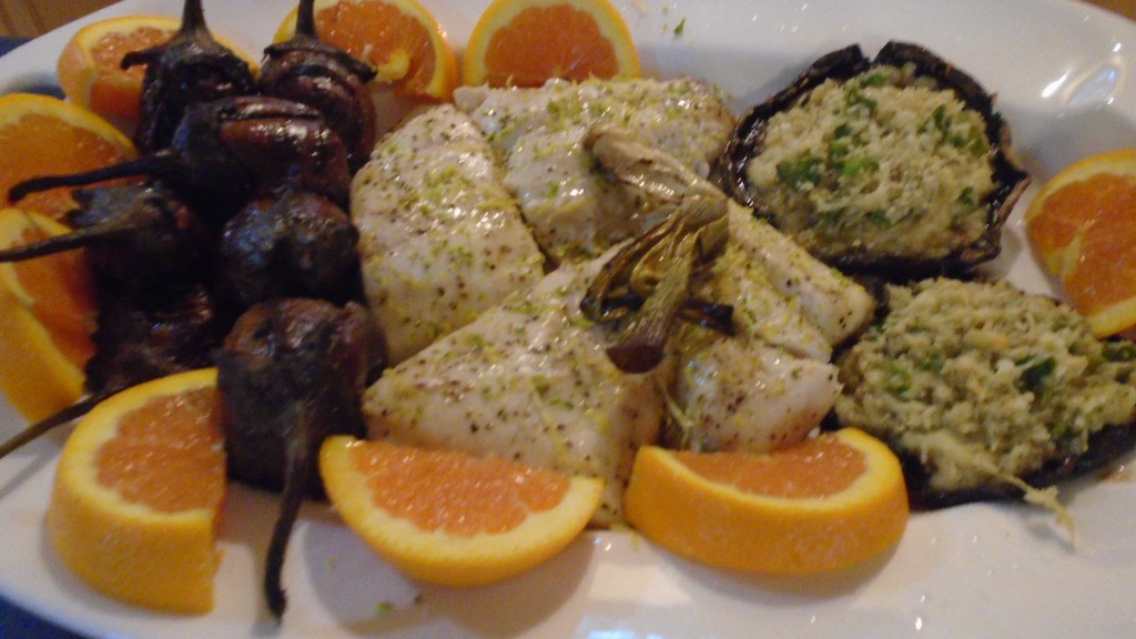 As I ponder this seemingly odd grouping of food items I want to find taste sensations that will tie everything together. I’m going with citrus fruit, garlic and olive oil – – maybe this can be considered “Mediterranean meets the Gulf of Mexico”, who knows?