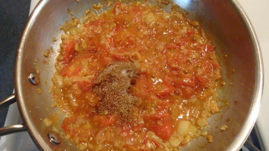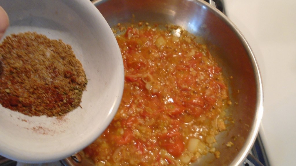 Add the cumin, chile powder, oregano and salt to the cooked tomatoes. Stir to combine.