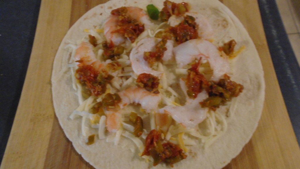 Repeat the process until all of the quesadillas are prepared. I made two shrimp quesadillas and three with chicken.