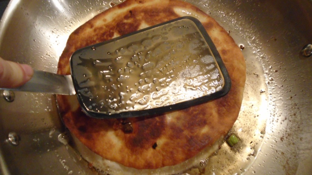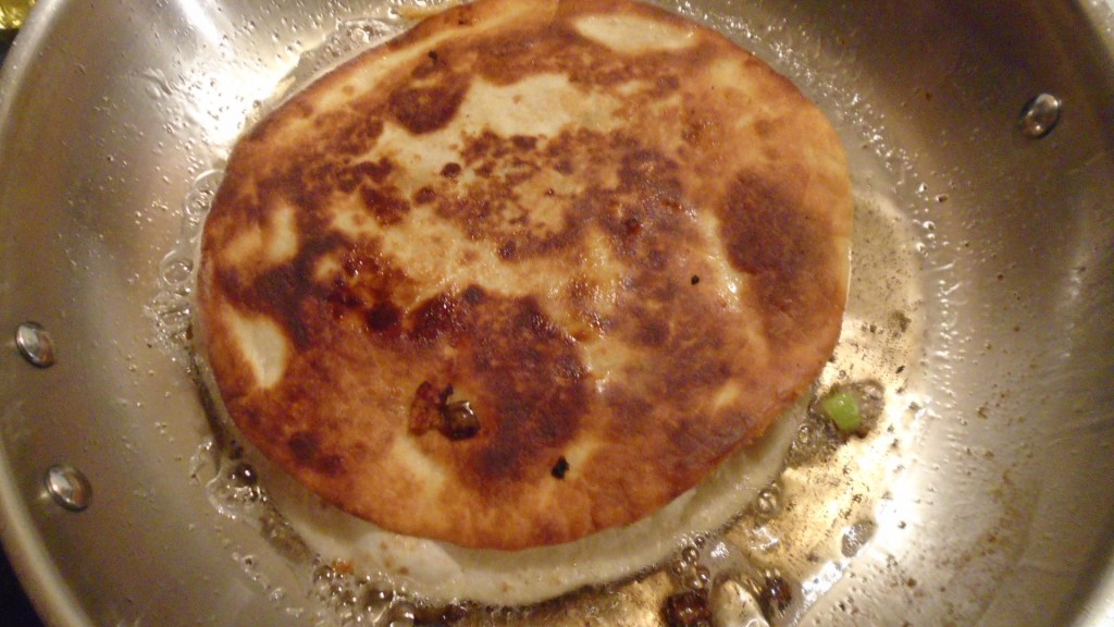 Brown the quesadilla for 30 to 40 seconds and turn, to brown the other side.