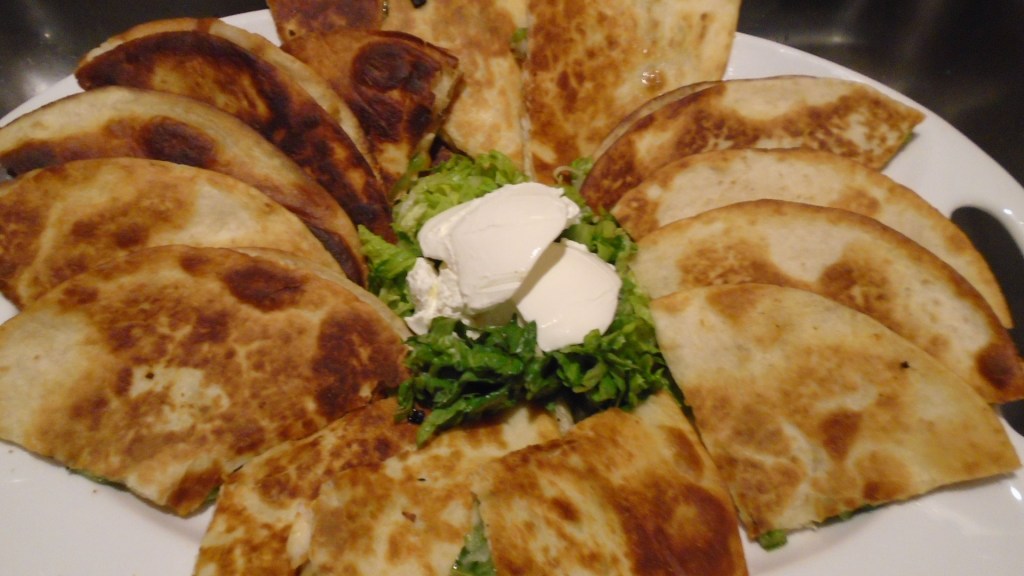 Quesadillas can be made in as little as two minutes. Toss some grated cheese onto a flour tortilla and top it with another tortilla and bake it in a microwave oven for less than a minute, and voilà!, it’s quesadilla time! But that’s a sad quesadilla. I want a quesadilla that satisfies!