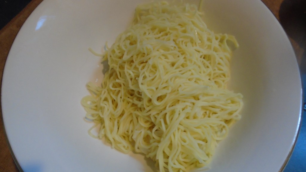 I’ll boil 8 ounces of the rigatoni and add it to a platter, top it with some marinara, top that with the fried pork and top that with more marina and top the whole thing with Parmesan cheese. Yes.