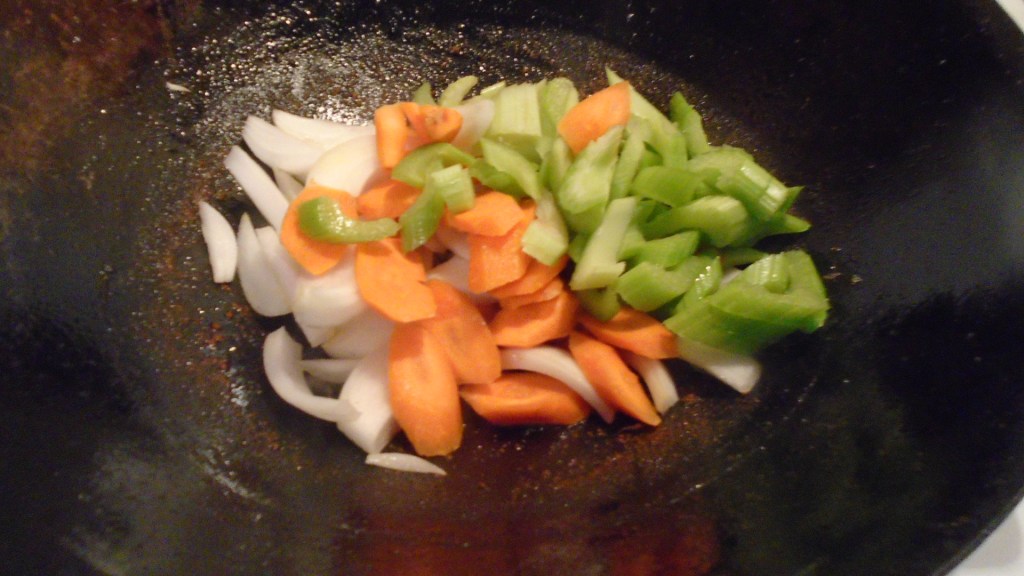 I’m going to bring out the skillet and add about ½ inch of oil to it and turn the heat to medium.
