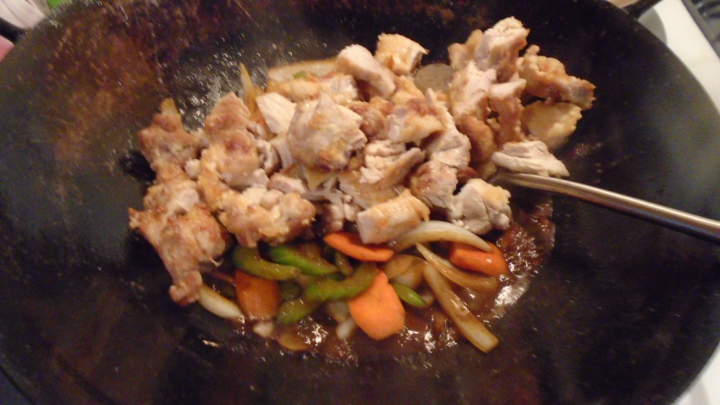 I’ll slice the pork now and set up a dredging station. Slice the pork and coat with cornstarch and a little black pepper. Egg, and Panko breadcrumbs are all I need for dredging station.