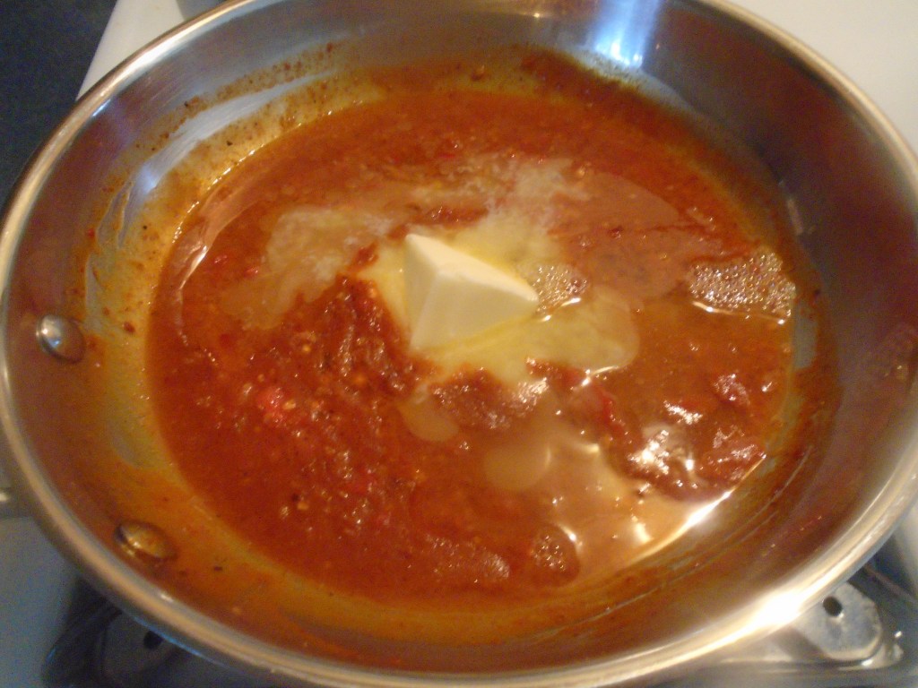Add the holy trinity (onion, celery and, in this case, jalapeño) to the pan. Adding garlic to the holy trinity is referred to “adding the Pope”, so, add the Pope. Add the chopped tomatoes.
