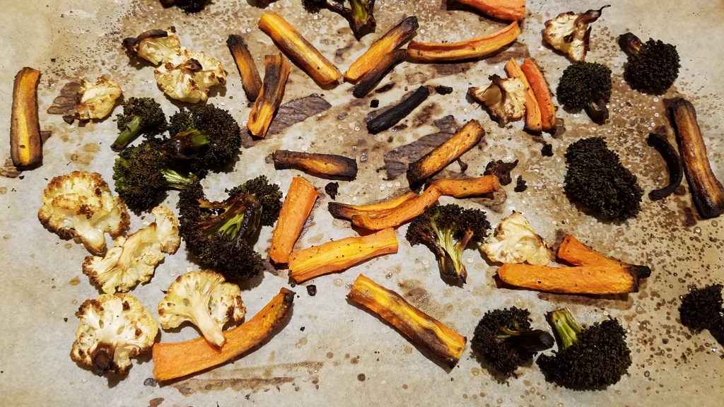 Or, if you want to burn them, leave them in a 400° oven for 45 minutes, like I did. There I was trying to salvage leftover vegetable tray fodder and I incinerated the whole lot. Oh well, that’s the way things roll in my kitchen, sometimes.