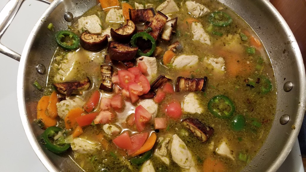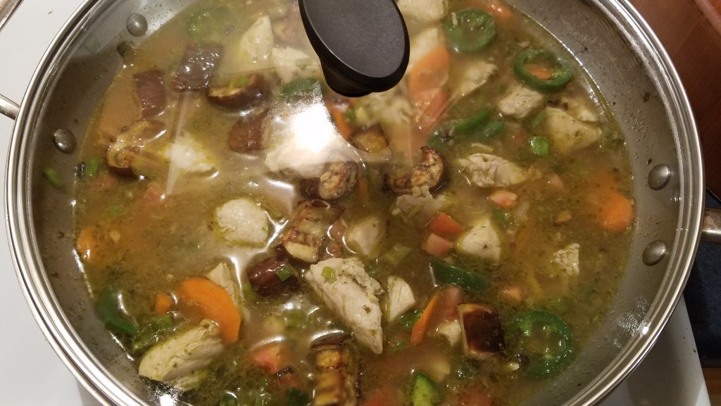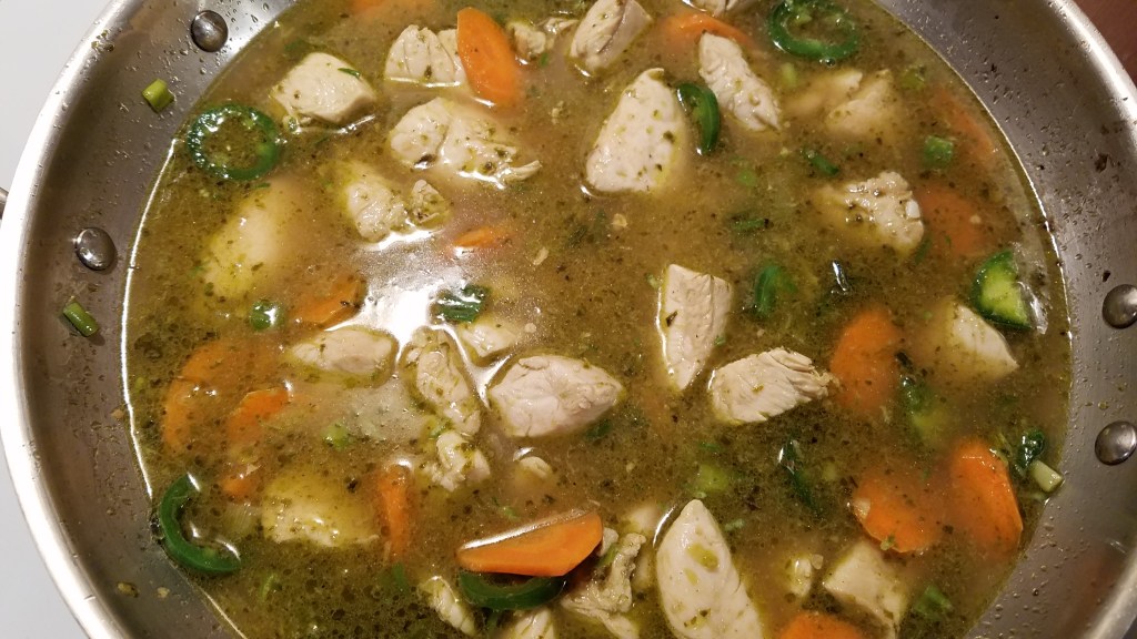 At this point, I tasted the broth and determined that the jalapeños were spicier than I had expected. I removed them and used them as a side dish, for anyone that wanted a little extra heat.