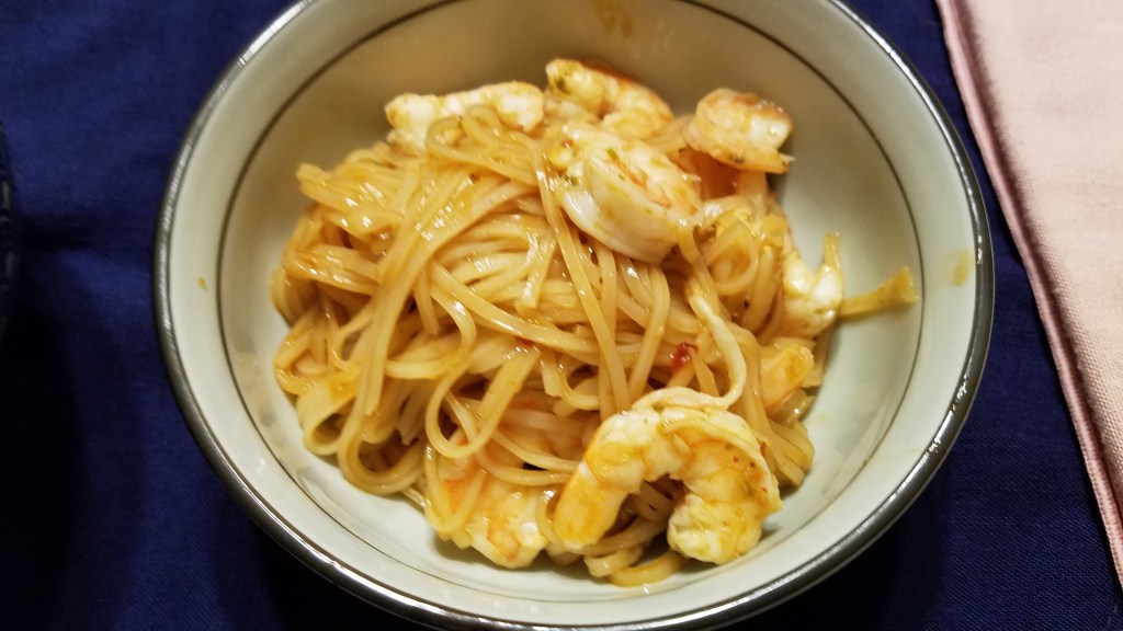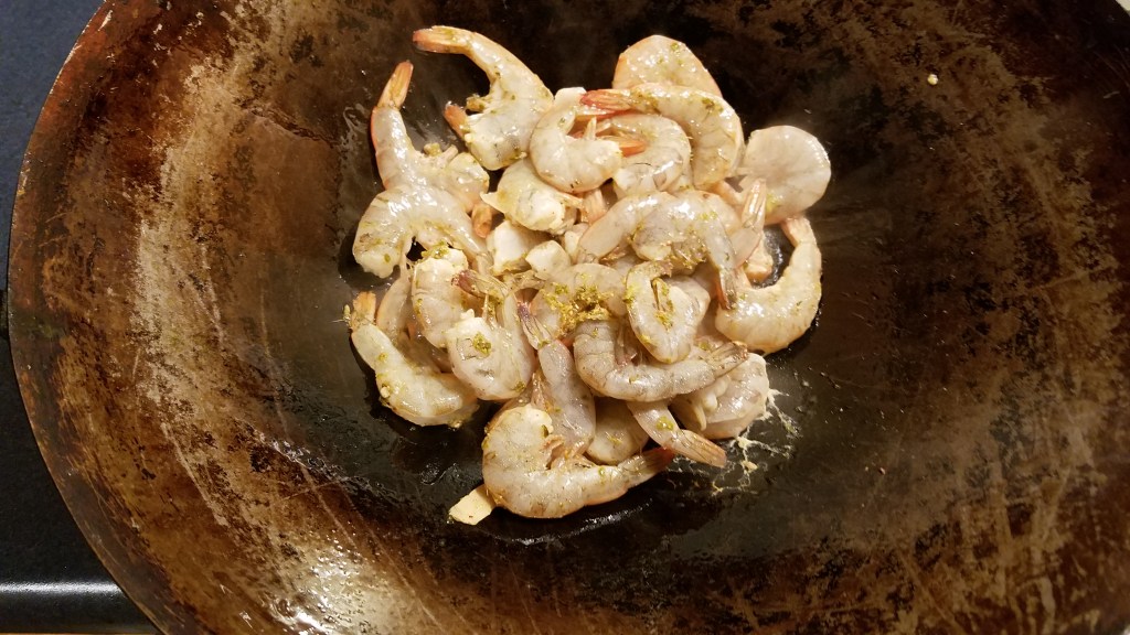 1 lb shrimp (I used frozen shrimp, in the shell, de-veined)