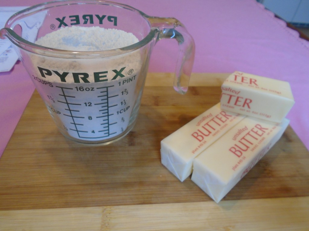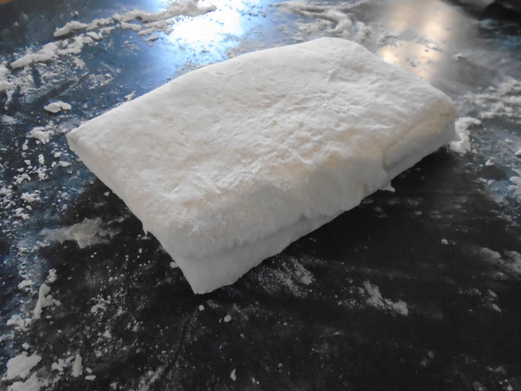 Puff pastry is really not too difficult to make at home as long as you adhere to a few rules. There are only a few ingredients but the important thing to remember while making the pastry is to keep all of the ingredients very cold during preparation. I chilled the flour, in addition to chilling the butter, and I put the water in the freezer, just prior to using it.
