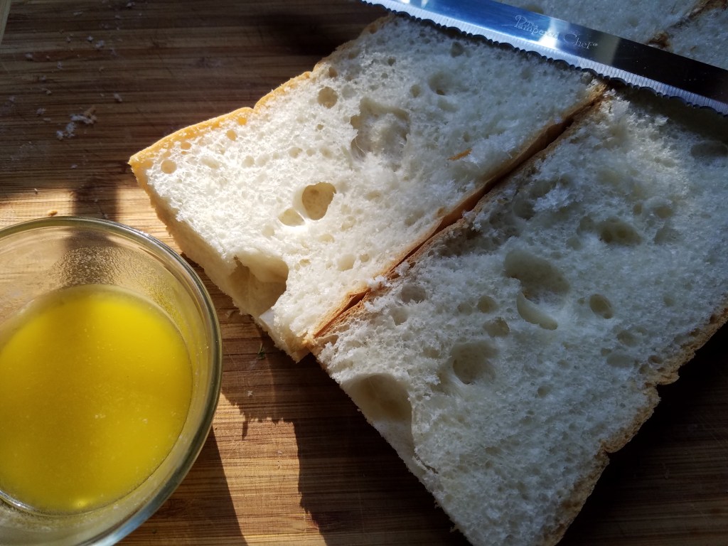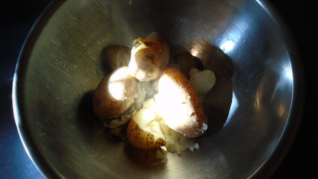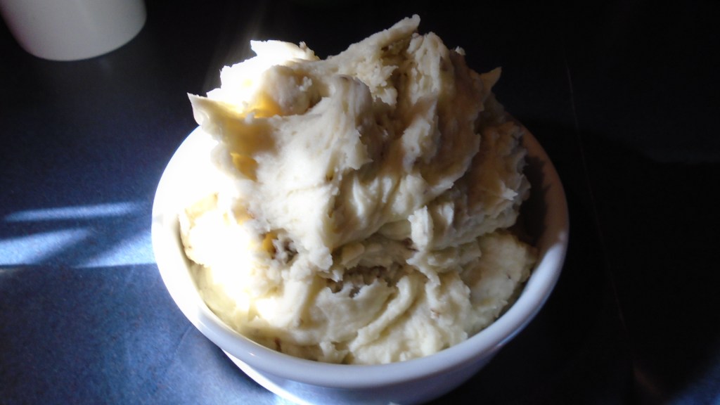 For this meal, I wanted to flavor the broccoli with garlic but I didn’t want pieces of garlic in the finished dish and I wanted to add garlic paste to the schnitzel gravy so, it made perfect sense to me to quickly pan fry the broccoli with whole pieces of garlic and then use the garlic for the gravy. That kind of efficiency pays off when you want to reduce the amount of time preparing a meal. If I remember correctly, this meal took about 45 minutes to prepare.