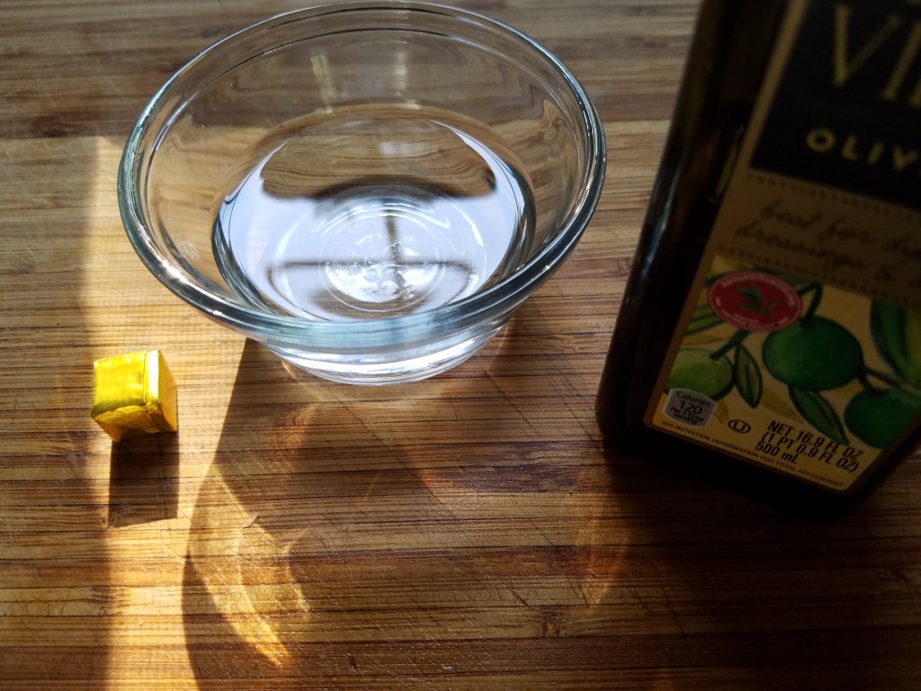 Add about 1 tablespoon of olive oil to a ceramic baking dish. Smear the oil around the bottom of the dish, to coat.