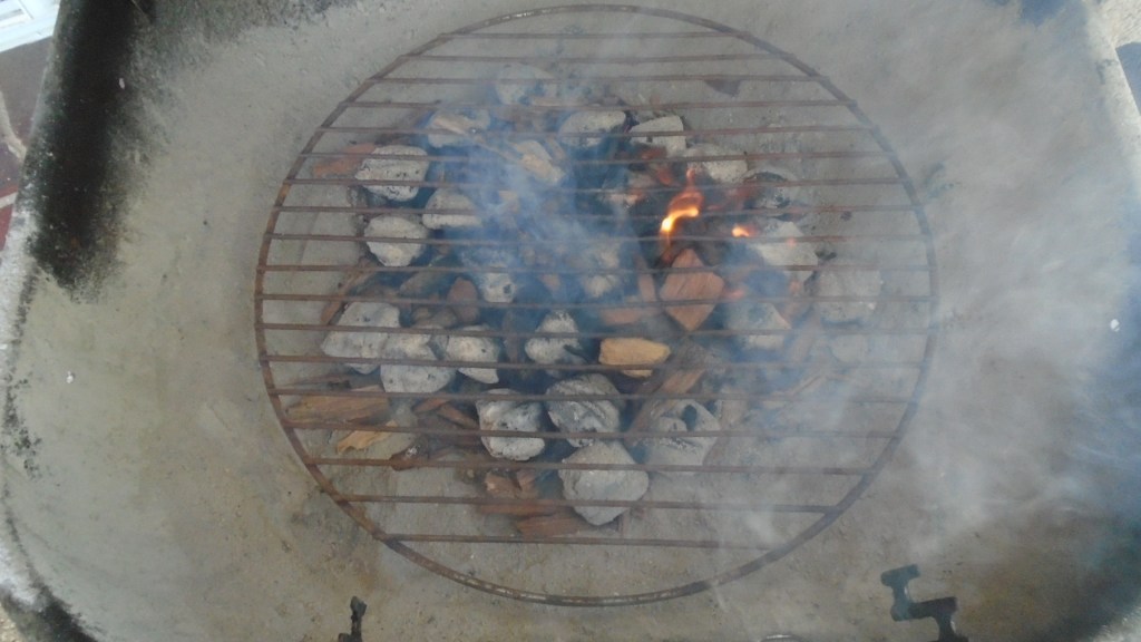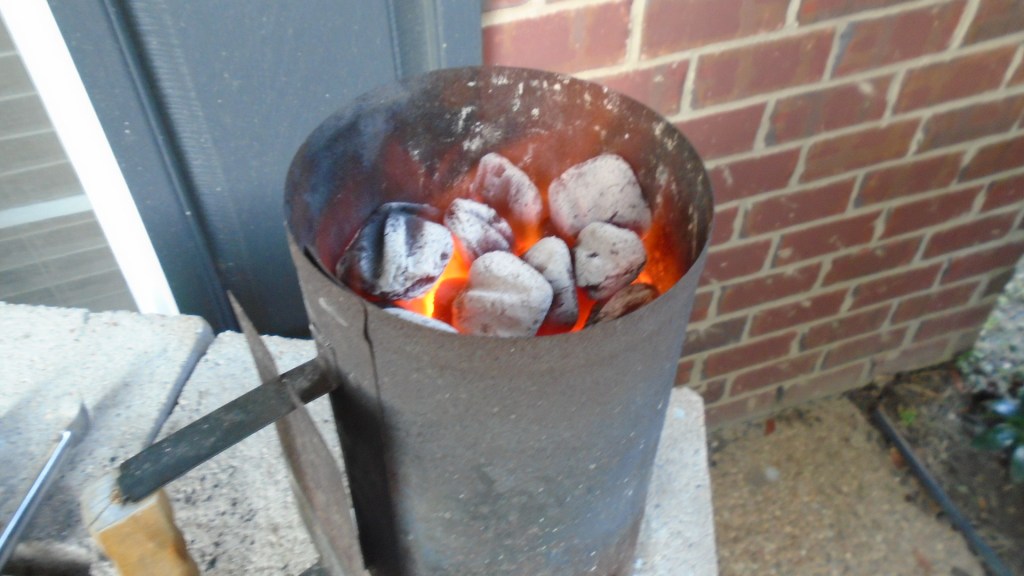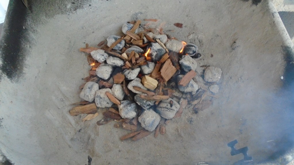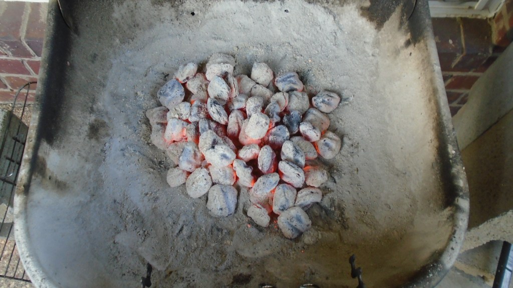 Start the grill. Allow the coals to reach their peak before putting the chicken on the grill. The goal is succulent, smoked chicken, without charring the chicken. Pile the hot coals in the center of the grill and lay the chicken on the edges of the grill. Cook time will be about 40 minutes and the chicken should be turned every 10 minutes. Be patient. All good things happen in due time!