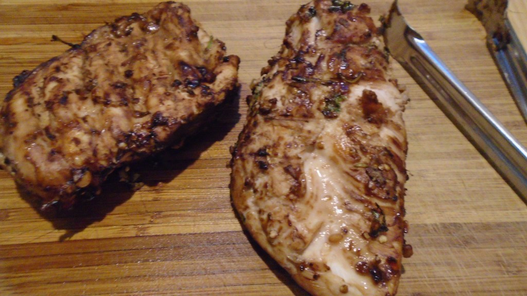 Grill the chicken until the internal temperature is at least 165°. To be honest, I rarely use a thermometer to check for doneness. I press my thumb on the chicken and when it feels firm, it’s done but, checking the temperature is a sure way to make sure the chicken is fully cooked.