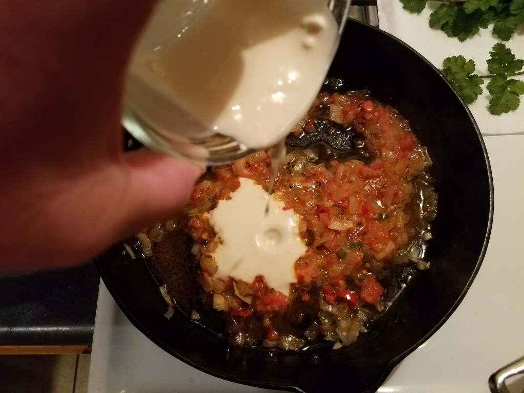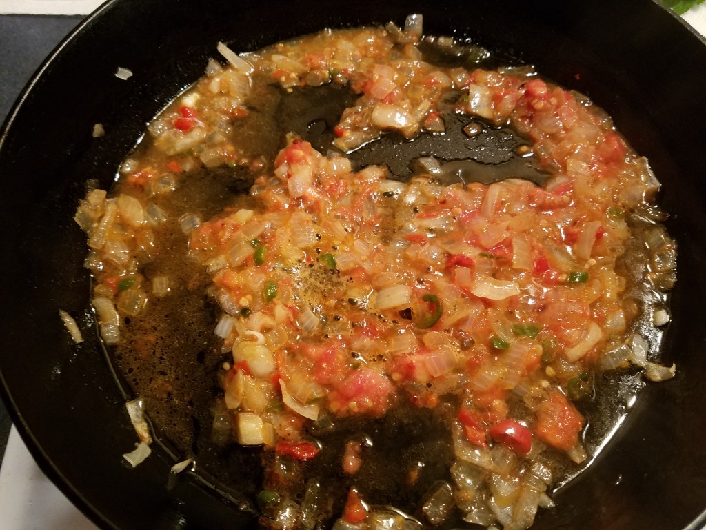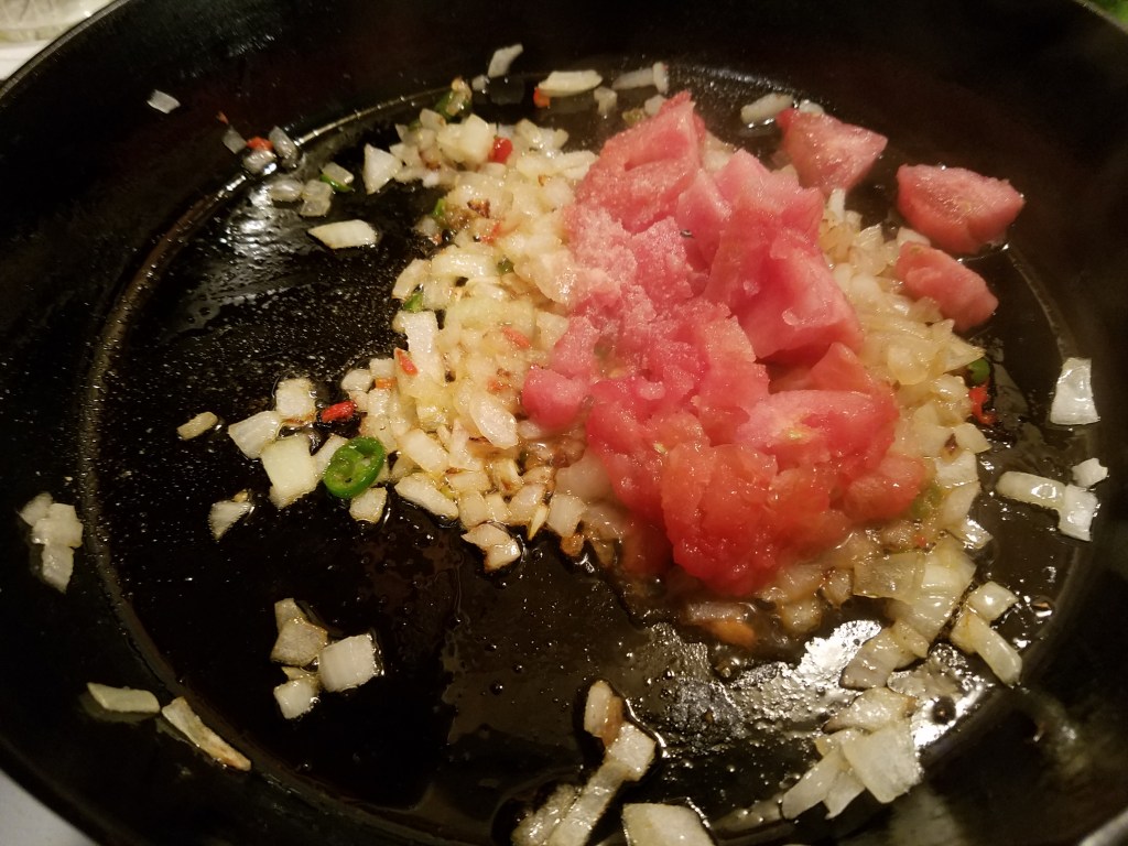 1 tomato, chopped (I used a frozen tomato, from this year’s garden)