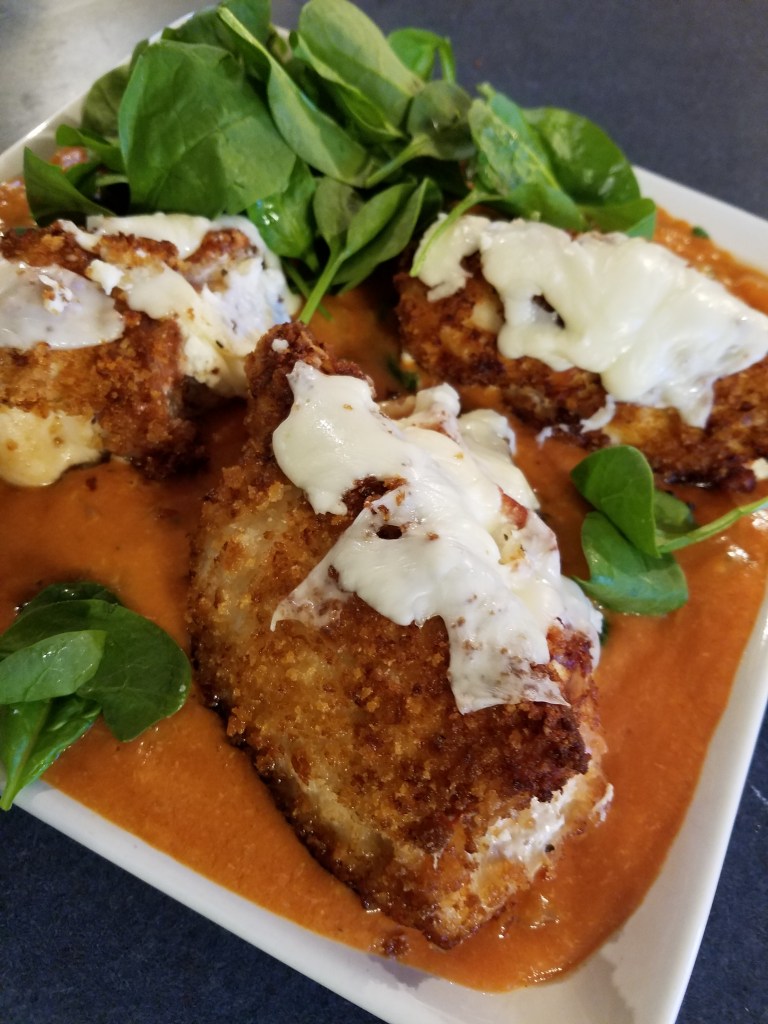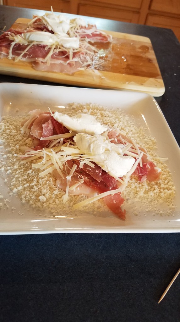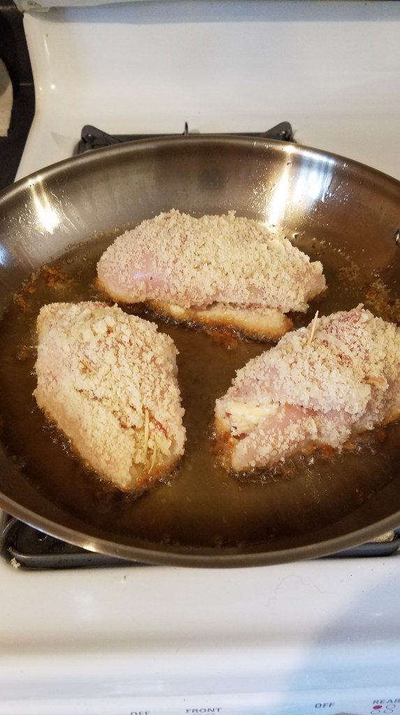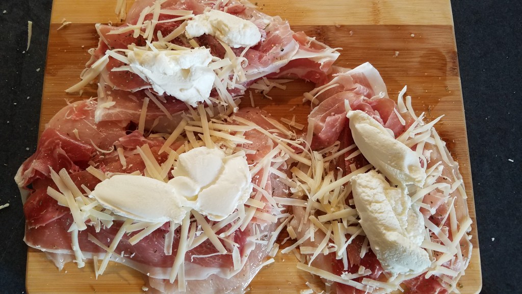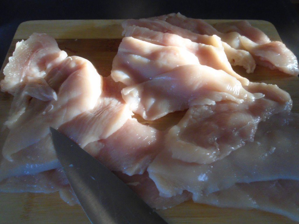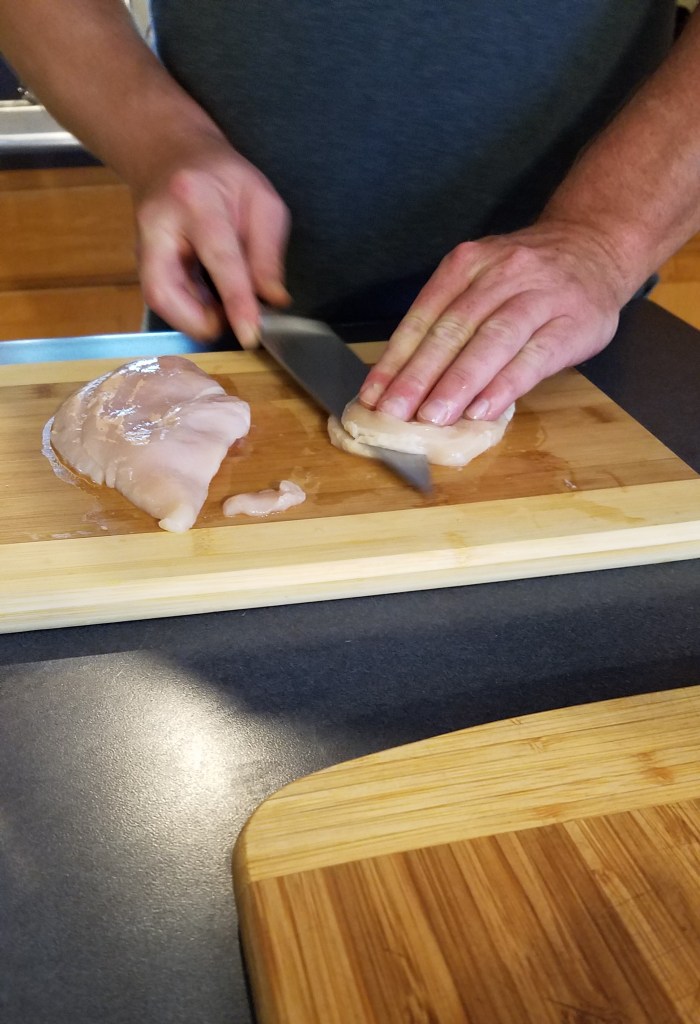 Back in old days…hmm, maybe 20 years ago, if I wanted to filet a chicken breast I would simply lay the breast on a cutting board and slice it in half, horizontally. Simple enough. But these pterodactyl sized chicken breasts nowadays are so large that I find myself slicing it twice, instead of once. I make a horizontal cut near the top and another cut near the bottom of the breast.