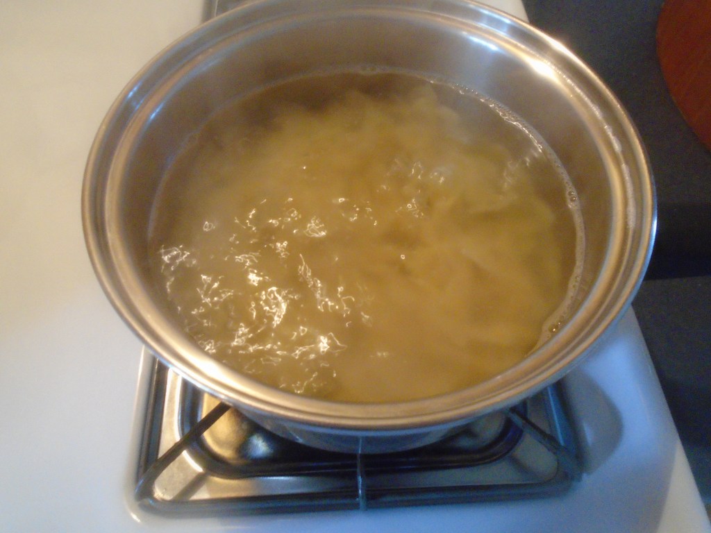 Fill a skillet with water, about half way. Bring the water to a boil and add the