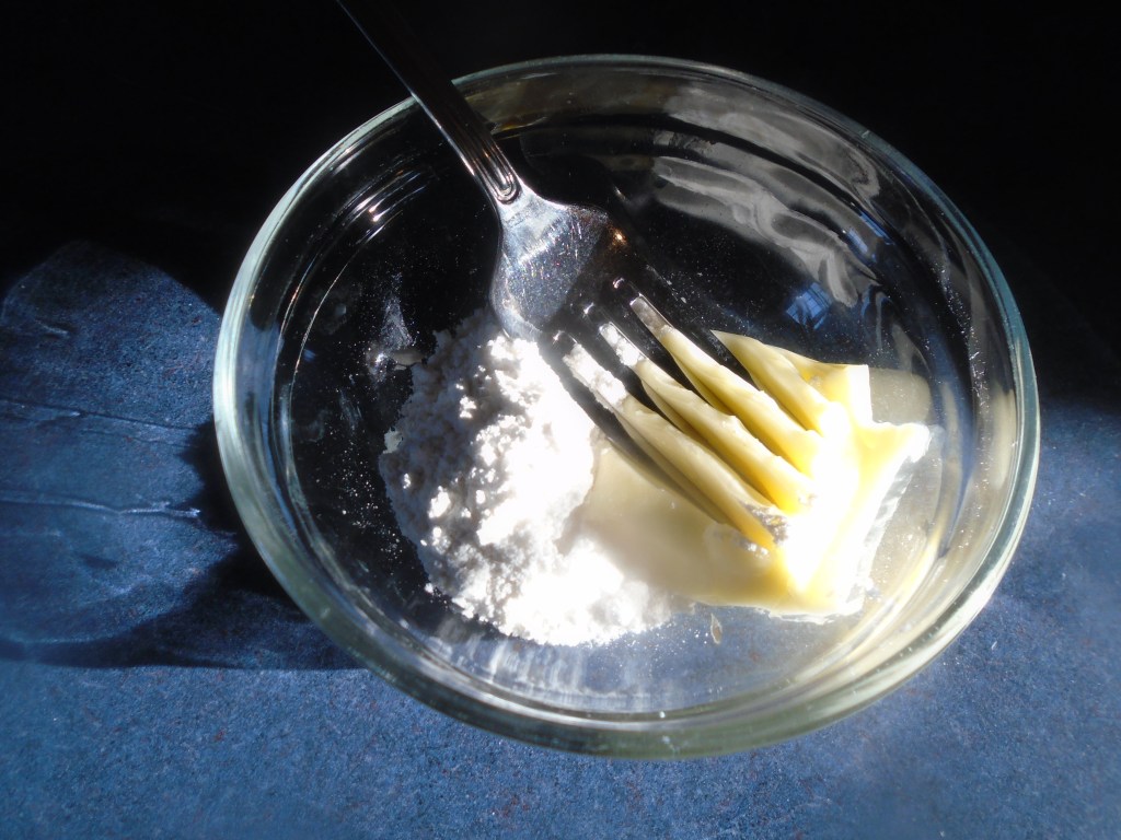 with the flat side of a large, kitchen knife. Keep working the mixture with the