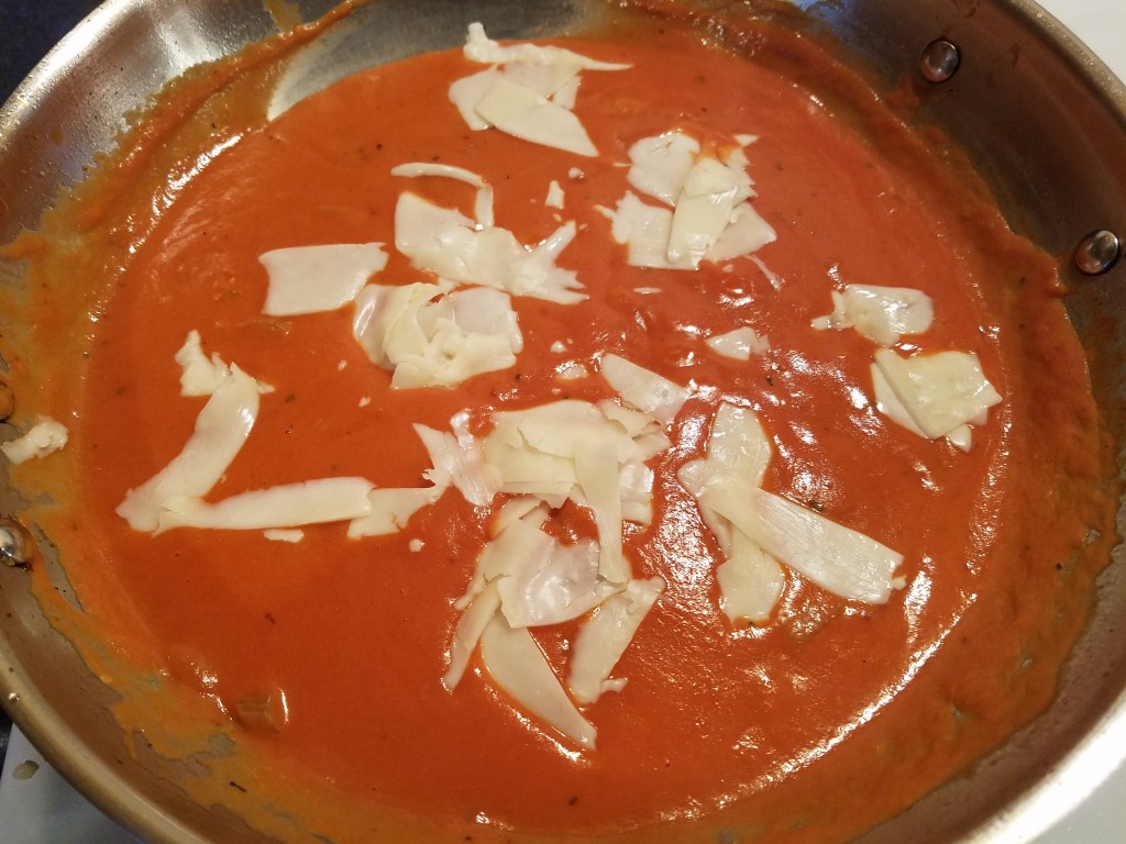 If I make this again, I will probably introduce the ricotta during the last few minutes again because it allowed the ricotta to stay slightly firm, instead of dissolving into the sauce.